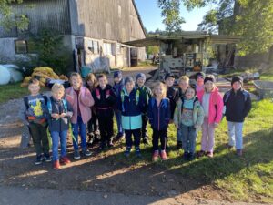 Am vorletzten Schultag vor den Herbstferien machten sich die zweiten Klassen mit dem Bus auf den Weg Richtung Königsberg. Dort, auf dem landwirtschaftlichen Anwesen Moritzburg, sollten die Äpfel mit Marthas Mobiler Apfelpresse aus Beilstein gepresst werden. Vor Ort mussten wir jedoch feststellen, dass die Presse im wahrsten Sinne des Wortes „keinen Saft“ – also keinen Strom – hatte. Alle Versuche, sie zum Laufen zu bringen, scheiterten. Spontan wurde aus dem Ausflug zur Apfelpresse eine Wanderung zur Königsberger Schutzhütte, wo die Kinder frühstücken und im Wald spielen konnten. Unterwegs gab es viel zu sehen. Neben Hühnern, Kühen und Ziegen gab es auch Puten, die sogar „antworteten“, wenn man ein bestimmtes Geräusch machte. Gemütlich kriechende Raupen genossen das wunderschöne Herbstwetter genauso wie wir und so wurde es auch ohne das Äpfel pressen ein schöner Vormittag.
