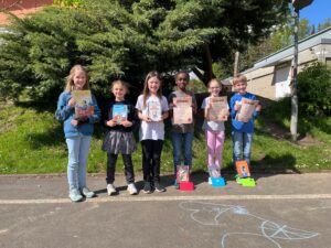 Die Siegerinnen und Sieger erhielten Gutscheine für eine Buchhandlung, die vom Förderverein Dünsbergschule e.V. gespendet wurden.
